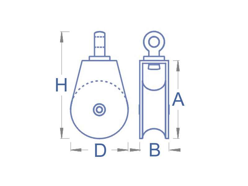 Messing blok met beweegbare rol. De rol heeft een diameter van 10 mm. Aan de bovenkant van de messing blokken zit een lus voor bevestiging. Het pakket bevat 2 volledig gemonteerde rolblokken.