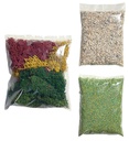 Voor het ontwerp: een mini grasmat, NOCH strooimateriaal, natuurstenen en hoogwaardig siermos, 6 model dennenbomen en 4 loofbomen