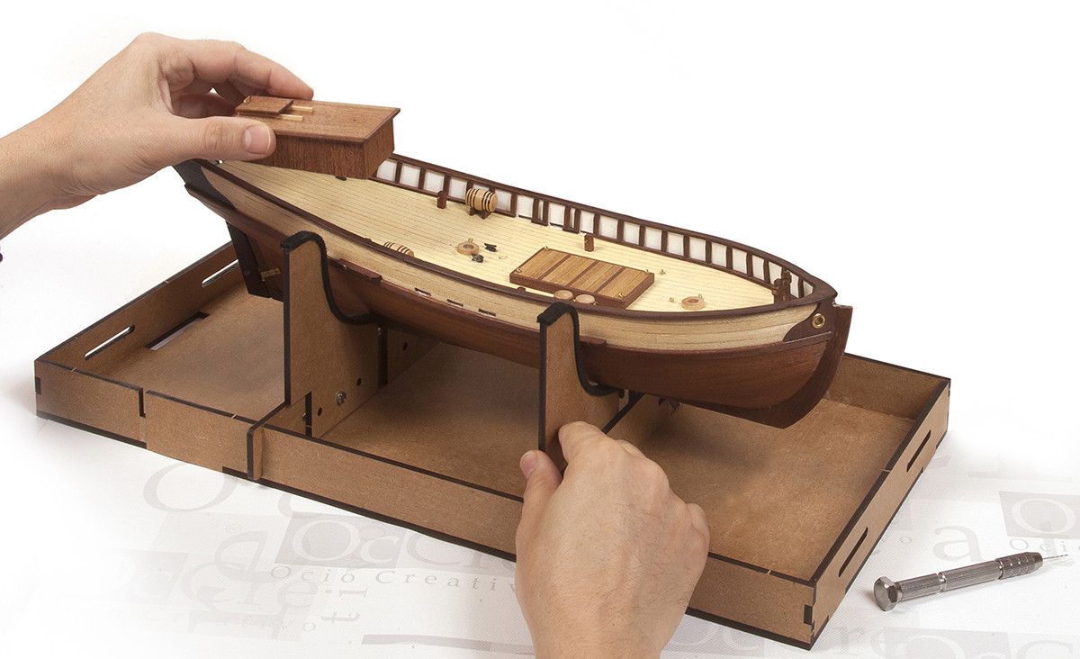 Praktische werkstandaard, voor schaalmodellen van schepen, trein of tram.