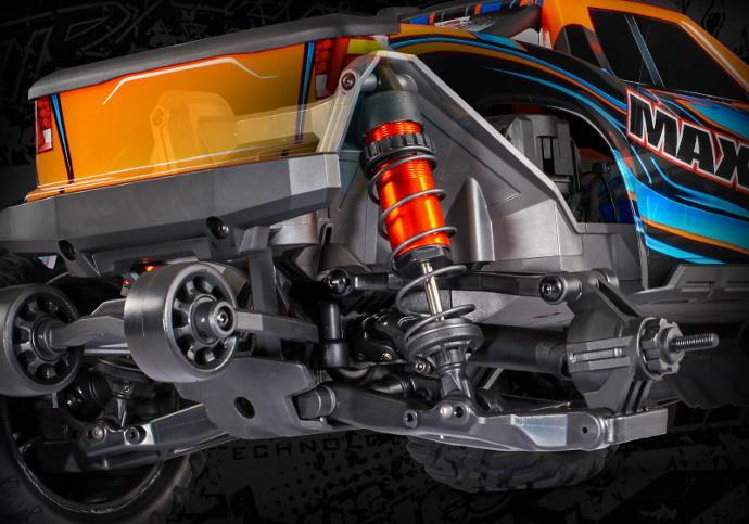 Maxx is ontworpen om extreme straffen en intense rijacties te weerstaan. Schokabsorberende draagarmen nemen de klappen met gemak op. De heavy-duty aandrijflijncomponenten hebben zich bewezen in voertuigen die groter en zwaarder zijn dan Maxx, dus er is voldoende kracht over. Het Maxx-chassis absorbeert en dissipeert de impactenergie over de hele constructie. Enorme GT-Maxx-schokken van aluminium met schroefdraad en assen met een grote diameter zorgen voor demping van de ophanging. Maxx nodigt je uit om nieuwe manieren te ontdekken om hard te rijden en plezier te hebben!